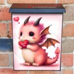 Enhance your Mailbox and your neighborhood with this brilliant Cute Valentine’s Dragon Colonial magnetic or self adhesive vinyl Mailbox Cover. Our magnetic covers feature a complete magnetic surface throughout the entire design, unlike lower-quality options that only incorporate two magnet strips combined with a piece of canvas. This ensures better functionality and a more reliable, stronger hold against the wind, also these covers have an additional UV protection, so your covers will not fade for many years. We offer self-adhesive and magnetic covers with both standard opaque vinyl or reflective vinyl options. The reflective mailbox covers function just like license plates and road signs, ensuring excellent visibility during nighttime. No matter the size of your mailbox, we make covers for all box sizes to suit your needs perfectly!