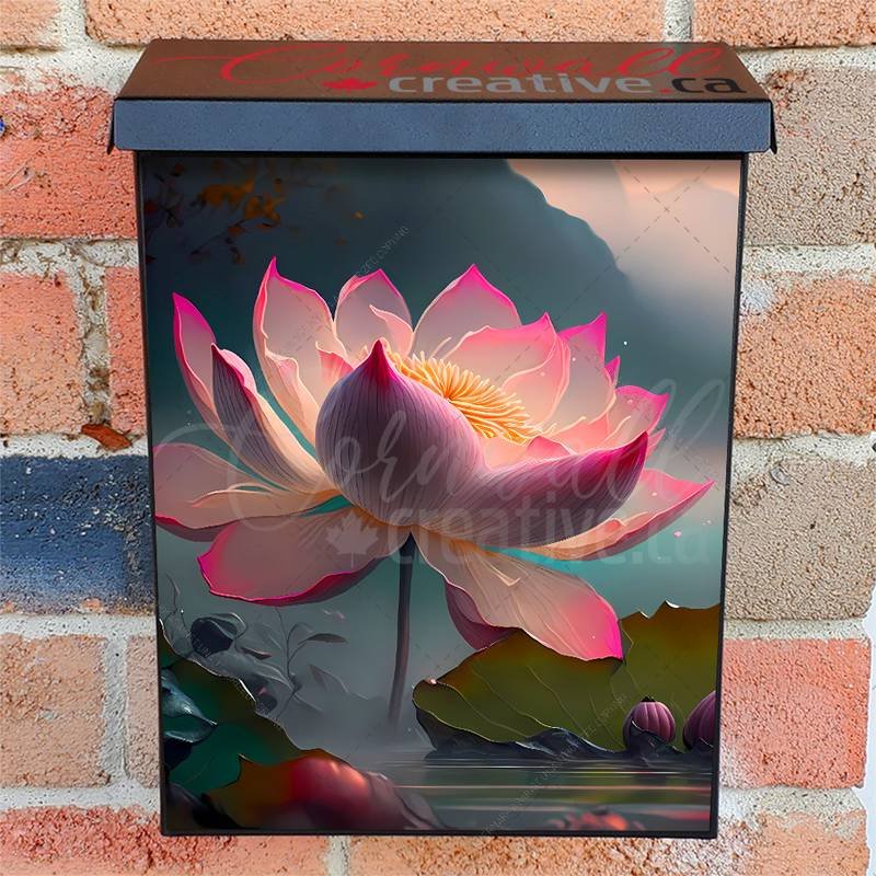 Enhance your Mailbox and your neighborhood with this brilliant Delicate Water Lily Colonial magnetic or self adhesive vinyl Mailbox Cover. Our magnetic covers feature a complete magnetic surface throughout the entire design, unlike lower-quality options that only incorporate two magnet strips combined with a piece of canvas. This ensures better functionality and a more reliable, stronger hold against the wind, also these covers have an additional UV protection, so your covers will not fade for many years. We offer self-adhesive and magnetic covers with both standard opaque vinyl or reflective vinyl options. The reflective mailbox covers function just like license plates and road signs, ensuring excellent visibility during nighttime. No matter the size of your mailbox, we make covers for all box sizes to suit your needs perfectly!