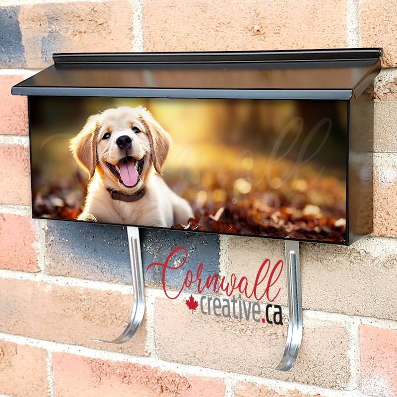 Applying your Dog With Autumn Field wall-mounted townhouse / ranch mailbox cover it is pretty easy to gussy up your mailbox to a special and unique item. These covers require a flat surface, so they work with townhouse / ranch mailboxes that do not have any embossed / debossed decoration or signs. Magnetic mailbox covers work with steel boxes only, for aluminum and plastic boxes we offer the self-adhesive vinyl covers. Also, you can create your custom townhouse / ranch mailbox cover using you own pictures, adding your name, street number, etc. Our magnetic covers feature a complete magnetic surface throughout the entire design, unlike lower-quality options that only incorporate two magnet strips combined with a piece of canvas. This ensures better functionality and a more reliable, stronger hold against the wind, also these covers have an additional UV protection, so your covers will not fade for many years. The reflective mailbox covers function just like license plates and road signs, ensuring excellent visibility during nighttime.