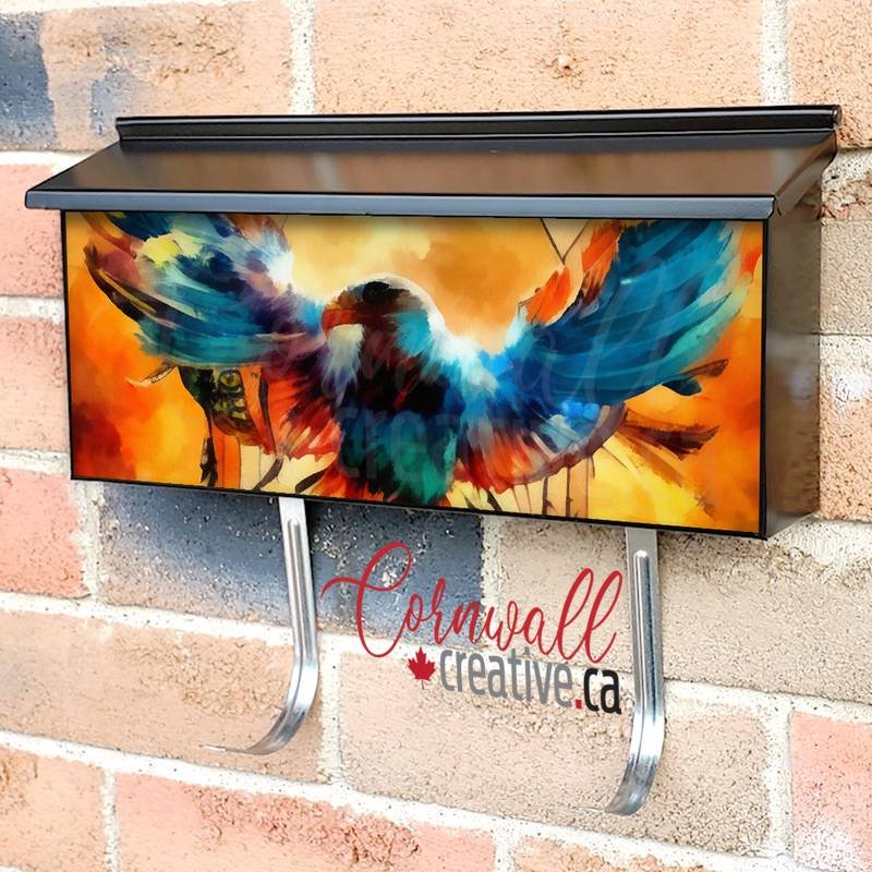 Applying your Eagle with Dreamcatcher #10 wall-mounted townhouse / ranch mailbox cover it is pretty easy to decorate your mailbox to a special and unique item. These covers require a flat surface, so they work with townhouse / ranch mailboxes that do not have any embossed / debossed decoration or signs. Magnetic mailbox covers work with steel boxes only, for aluminum and plastic boxes we offer the self-adhesive vinyl covers. Also, you can create your custom townhouse / ranch mailbox cover using you own pictures, adding your name, street number, etc. Our magnetic covers feature a complete magnetic surface throughout the entire design, unlike lower-quality options that only incorporate two magnet strips combined with a piece of canvas. This ensures better functionality and a more reliable, stronger hold against the wind, also these covers have an additional UV protection, so your covers will not fade for many years. The reflective mailbox covers function just like license plates and road signs, ensuring excellent visibility during nighttime.