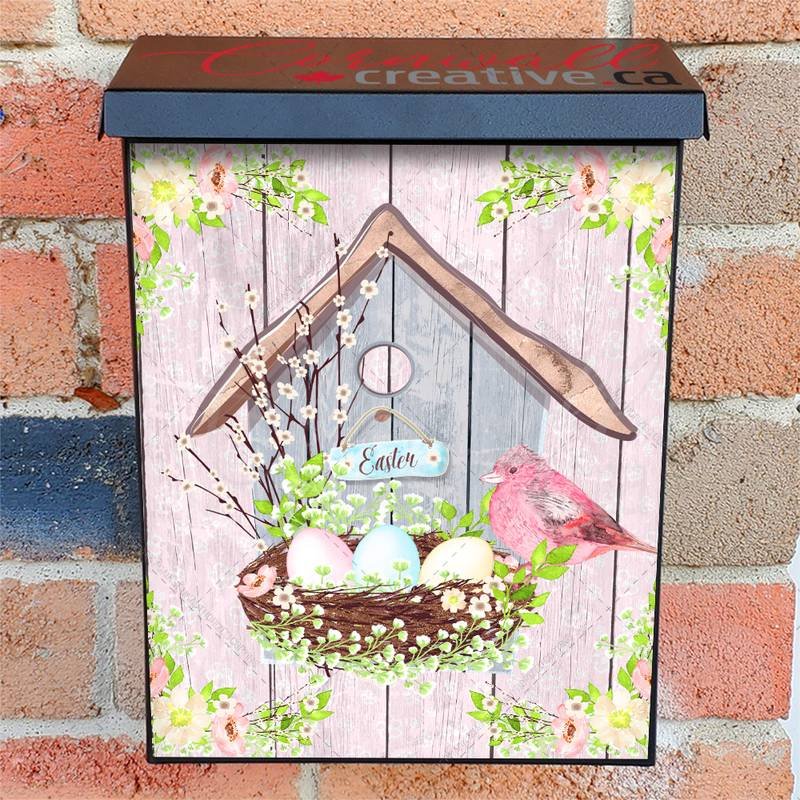 Beautify your Mailbox and your neighborhood with this brilliant Easter Birdhouse with a Nest and Bird Colonial magnetic or self adhesive vinyl Mailbox Cover. Our magnetic covers feature a complete magnetic surface throughout the entire design, unlike lower-quality options that only incorporate two magnet strips combined with a piece of canvas. This ensures better functionality and a more reliable, stronger hold against the wind, also these covers have an additional UV protection, so your covers will not fade for many years. We offer self-adhesive and magnetic covers with both standard opaque vinyl or reflective vinyl options. The reflective mailbox covers function just like license plates and road signs, ensuring excellent visibility during nighttime. No matter the size of your mailbox, we make covers for all box sizes to suit your needs perfectly!
