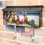Applying your Easter Bunnies And Colorful Easter Eggs On A Sand Beach 2 wall-mounted townhouse / ranch mailbox cover it is pretty easy to dress-up your mailbox to a special and unique item. These covers require a flat surface, so they work with townhouse / ranch mailboxes that do not have any embossed / debossed decoration or signs. Magnetic mailbox covers work with steel boxes only, for aluminum and plastic boxes we offer the self-adhesive vinyl covers. Also, you can create your custom townhouse / ranch mailbox cover using you own pictures, adding your name, street number, etc. Our magnetic covers feature a complete magnetic surface throughout the entire design, unlike lower-quality options that only incorporate two magnet strips combined with a piece of canvas. This ensures better functionality and a more reliable, stronger hold against the wind, also these covers have an additional UV protection, so your covers will not fade for many years. The reflective mailbox covers function just like license plates and road signs, ensuring excellent visibility during nighttime.