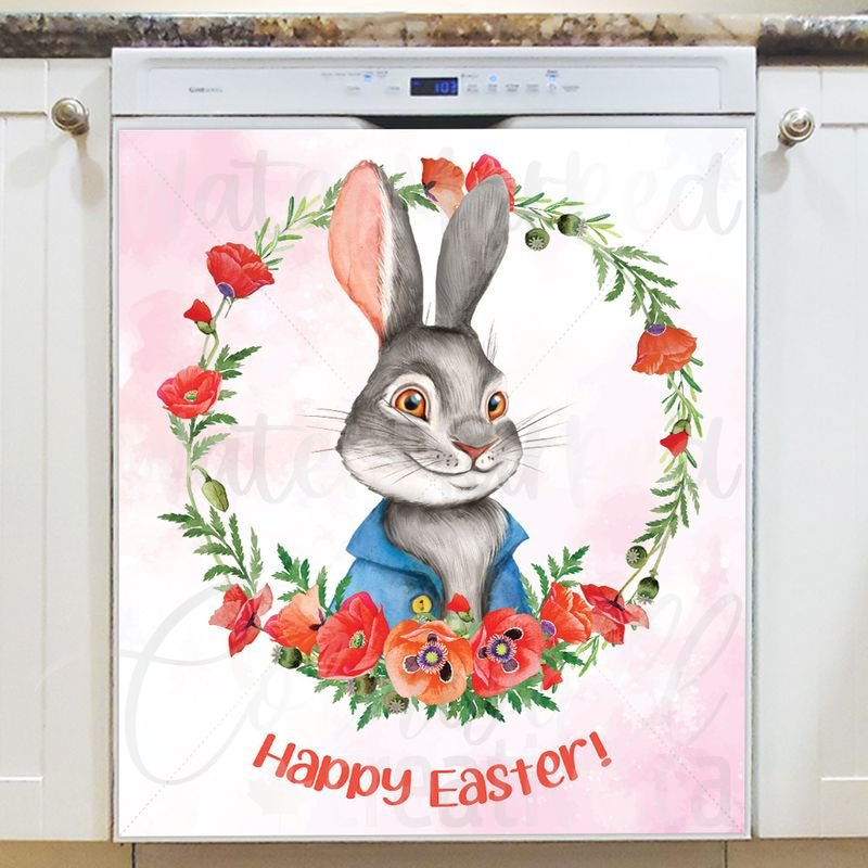 Easter Bunny with a Poppy Wreath Magnetic Dishwasher Door Cover