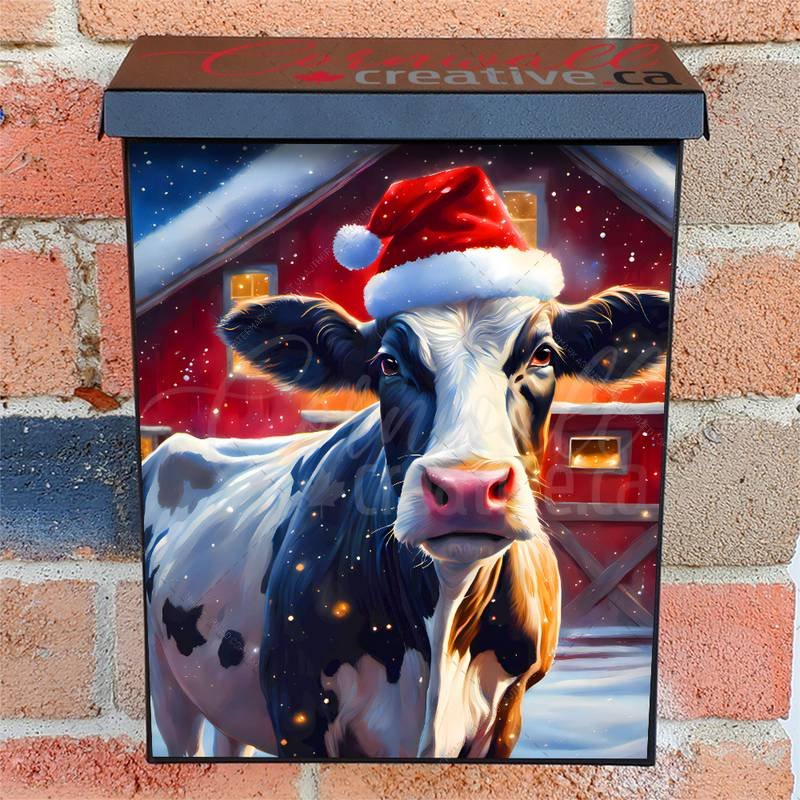 Beautify your Mailbox and your neighborhood with this brilliant Farmhouse Cow in Santa Hat 2 Colonial magnetic or self adhesive vinyl Mailbox Cover. Our magnetic covers feature a complete magnetic surface throughout the entire design, unlike lower-quality options that only incorporate two magnet strips combined with a piece of canvas. This ensures better functionality and a more reliable, stronger hold against the wind, also these covers have an additional UV protection, so your covers will not fade for many years. We offer self-adhesive and magnetic covers with both standard opaque vinyl or reflective vinyl options. The reflective mailbox covers function just like license plates and road signs, ensuring excellent visibility during nighttime. No matter the size of your mailbox, we make covers for all box sizes to suit your needs perfectly!