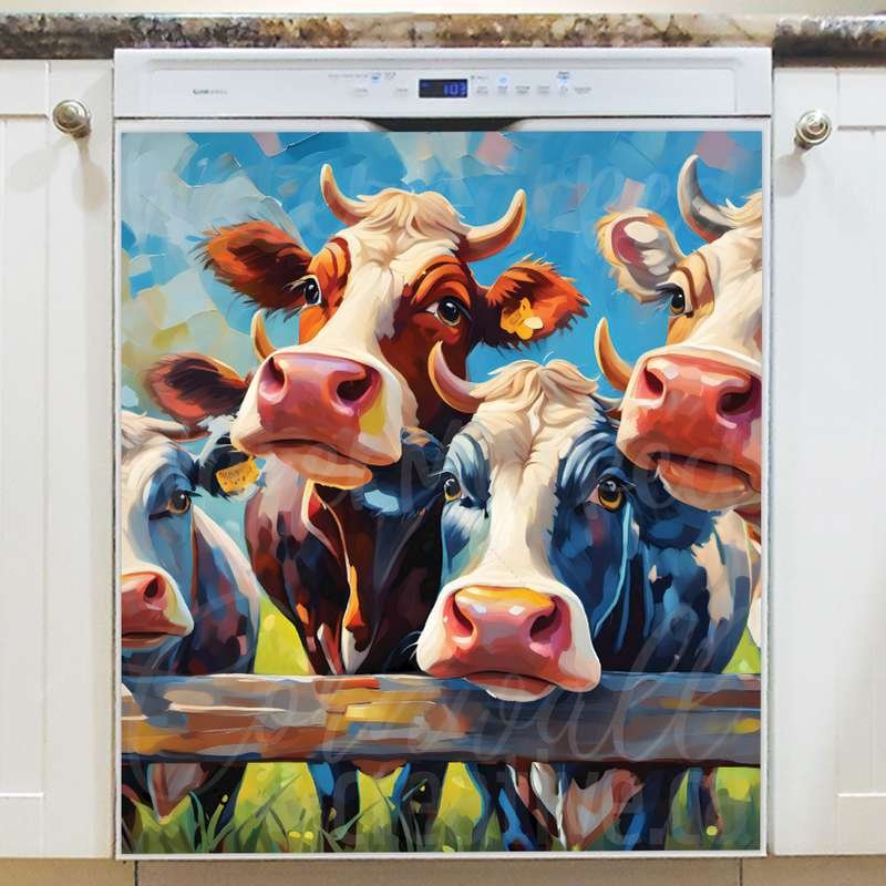 Glamorize your kitchen effortlessly with this stunning Farmhouse Cows Over the Fence Magnetic Dishwasher Door Cover! Keep in mind that while this cover works with most dishwashers, some stainless steel and plastic doors might not hold magnets. There are two types of stainless steel: one that attracts magnets well and another that does not, and plastic doors will definitely not work with magnets. So, it is a good idea to test the surface with a magnet before making a purchase. If your dishwasher door is not compatible, consider opting for the Removable Dishwasher Door Sticker instead. Your improved kitchen will be ready for the season in no time! Keep in mind that this magnetic cover is versatile and can be used on a variety of appliances, including fridges, freezers, washers, dryers, and more!