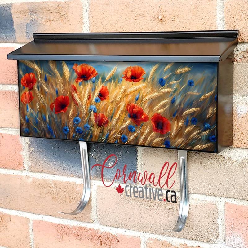 Applying your Flowers and Wheat in the Wind wall-mounted townhouse / ranch mailbox cover it is pretty easy to enhance your mailbox to a special and unique item. These covers require a flat surface, so they work with townhouse / ranch mailboxes that do not have any embossed / debossed decoration or signs. Magnetic mailbox covers work with steel boxes only, for aluminum and plastic boxes we offer the self-adhesive vinyl covers. Also, you can create your custom townhouse / ranch mailbox cover using you own pictures, adding your name, street number, etc. Our magnetic covers feature a complete magnetic surface throughout the entire design, unlike lower-quality options that only incorporate two magnet strips combined with a piece of canvas. This ensures better functionality and a more reliable, stronger hold against the wind, also these covers have an additional UV protection, so your covers will not fade for many years. The reflective mailbox covers function just like license plates and road signs, ensuring excellent visibility during nighttime.
