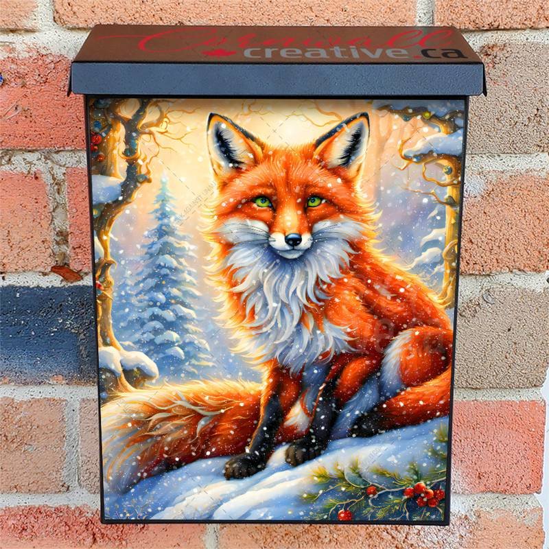 Gussy up your Mailbox and your neighborhood with this brilliant Fox in the Snowy Forest Colonial magnetic or self adhesive vinyl Mailbox Cover. Our magnetic covers feature a complete magnetic surface throughout the entire design, unlike lower-quality options that only incorporate two magnet strips combined with a piece of canvas. This ensures better functionality and a more reliable, stronger hold against the wind, also these covers have an additional UV protection, so your covers will not fade for many years. We offer self-adhesive and magnetic covers with both standard opaque vinyl or reflective vinyl options. The reflective mailbox covers function just like license plates and road signs, ensuring excellent visibility during nighttime. No matter the size of your mailbox, we make covers for all box sizes to suit your needs perfectly!