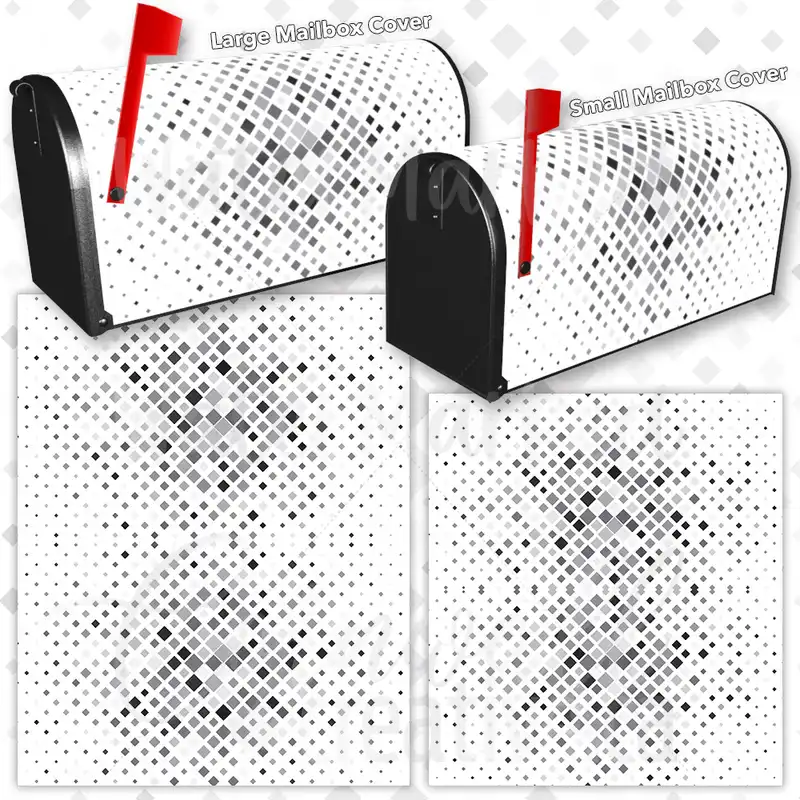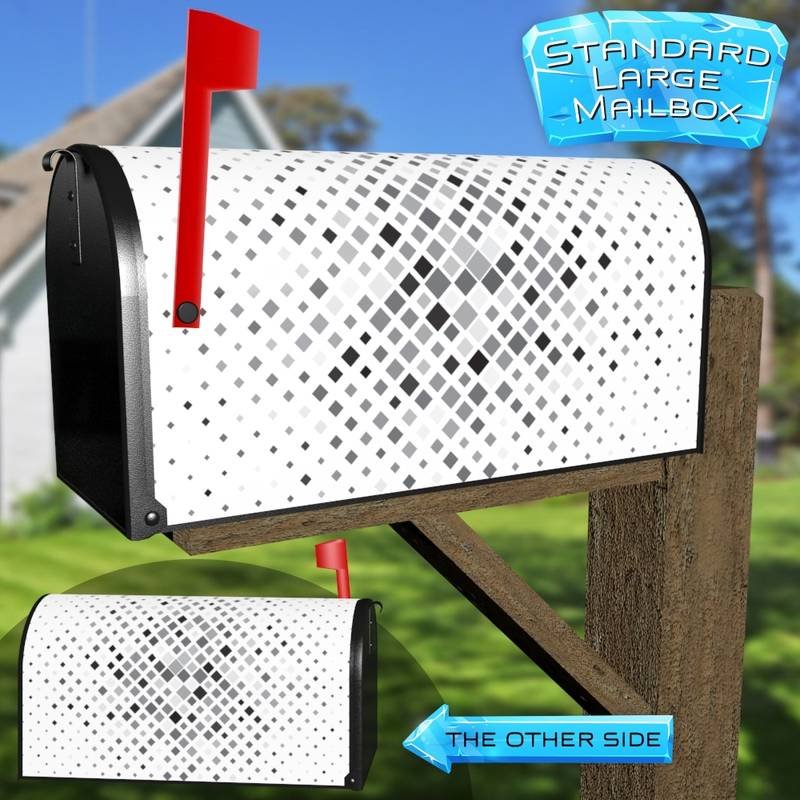 Dress-up your Mailbox and your neighborhood with this brilliant Geometric Grey Pattern curbside / rural / farm magnetic or self adhesive vinyl Mailbox Cover. Our magnetic covers feature a complete magnetic surface throughout the entire design, unlike lower-quality options that only incorporate two magnet strips combined with a piece of canvas. This ensures better functionality and a more reliable, stronger hold against the wind, also these covers have an additional UV protection, so your covers will not fade for many years. We offer self-adhesive and magnetic covers with both standard opaque vinyl or reflective vinyl options. The reflective mailbox covers function just like license plates and road signs, ensuring excellent visibility during nighttime. No matter the size of your mailbox, we make covers for all small, large and jumbo boxes to suit your needs perfectly!
