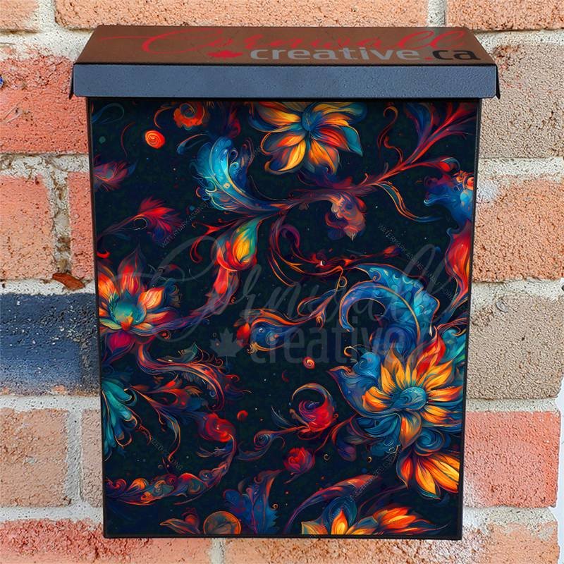 Transform your Mailbox and your neighborhood with this brilliant Gorgeous Boho Floral Pattern Colonial magnetic or self adhesive vinyl Mailbox Cover. Our magnetic covers feature a complete magnetic surface throughout the entire design, unlike lower-quality options that only incorporate two magnet strips combined with a piece of canvas. This ensures better functionality and a more reliable, stronger hold against the wind, also these covers have an additional UV protection, so your covers will not fade for many years. We offer self-adhesive and magnetic covers with both standard opaque vinyl or reflective vinyl options. The reflective mailbox covers function just like license plates and road signs, ensuring excellent visibility during nighttime. No matter the size of your mailbox, we make covers for all box sizes to suit your needs perfectly!