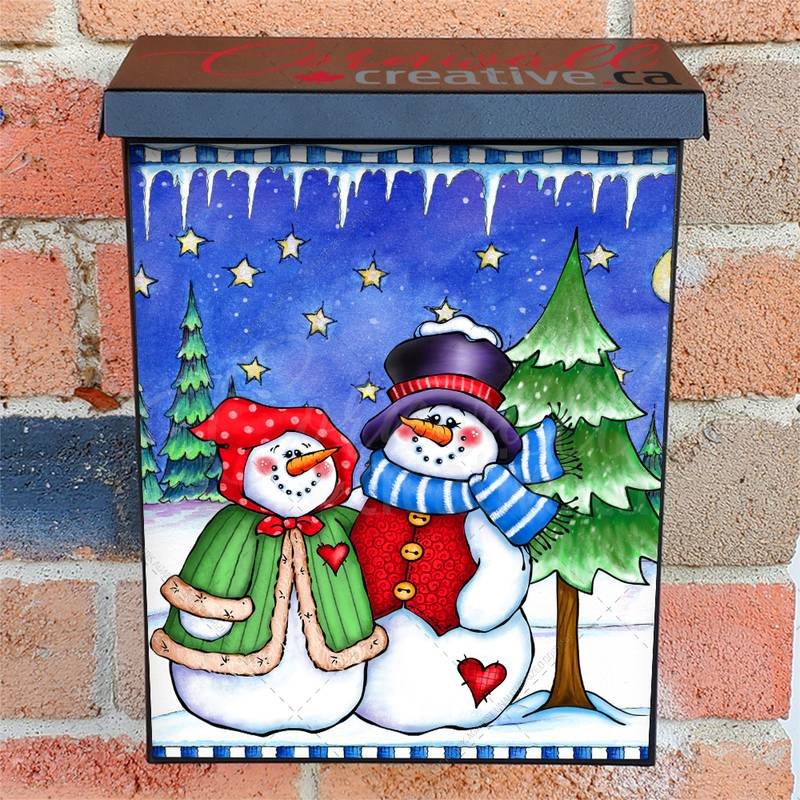 Enhance your Mailbox and your neighborhood with this brilliant Grandma and Grandpa Snowman #1 Colonial magnetic or self adhesive vinyl Mailbox Cover. Our magnetic covers feature a complete magnetic surface throughout the entire design, unlike lower-quality options that only incorporate two magnet strips combined with a piece of canvas. This ensures better functionality and a more reliable, stronger hold against the wind, also these covers have an additional UV protection, so your covers will not fade for many years. We offer self-adhesive and magnetic covers with both standard opaque vinyl or reflective vinyl options. The reflective mailbox covers function just like license plates and road signs, ensuring excellent visibility during nighttime. No matter the size of your mailbox, we make covers for all box sizes to suit your needs perfectly!