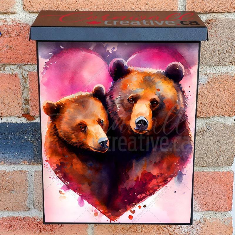 Enhance your Mailbox and your neighborhood with this brilliant Grizzly Bear Couple #2 Colonial magnetic or self adhesive vinyl Mailbox Cover. Our magnetic covers feature a complete magnetic surface throughout the entire design, unlike lower-quality options that only incorporate two magnet strips combined with a piece of canvas. This ensures better functionality and a more reliable, stronger hold against the wind, also these covers have an additional UV protection, so your covers will not fade for many years. We offer self-adhesive and magnetic covers with both standard opaque vinyl or reflective vinyl options. The reflective mailbox covers function just like license plates and road signs, ensuring excellent visibility during nighttime. No matter the size of your mailbox, we make covers for all box sizes to suit your needs perfectly!