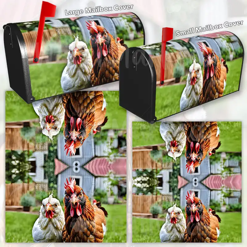 Grumpy Rooster and Chicken Rural Farm Mailbox Cover