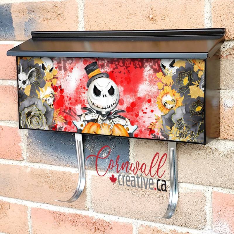 Applying your Halloween Pumpkin Skeleton wall-mounted townhouse / ranch mailbox cover it is pretty easy to improve your mailbox to a special and unique item. These covers require a flat surface, so they work with townhouse / ranch mailboxes that do not have any embossed / debossed decoration or signs. Magnetic mailbox covers work with steel boxes only, for aluminum and plastic boxes we offer the self-adhesive vinyl covers. Also, you can create your custom townhouse / ranch mailbox cover using you own pictures, adding your name, street number, etc. Our magnetic covers feature a complete magnetic surface throughout the entire design, unlike lower-quality options that only incorporate two magnet strips combined with a piece of canvas. This ensures better functionality and a more reliable, stronger hold against the wind, also these covers have an additional UV protection, so your covers will not fade for many years. The reflective mailbox covers function just like license plates and road signs, ensuring excellent visibility during nighttime.