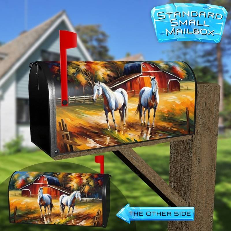 Prettify your Mailbox and your neighborhood with this brilliant Horses Running through the Waves curbside / rural / farm magnetic or self adhesive vinyl Mailbox Cover. Our magnetic covers feature a complete magnetic surface throughout the entire design, unlike lower-quality options that only incorporate two magnet strips combined with a piece of canvas. This ensures better functionality and a more reliable, stronger hold against the wind, also these covers have an additional UV protection, so your covers will not fade for many years. We offer self-adhesive and magnetic covers with both standard opaque vinyl or reflective vinyl options. The reflective mailbox covers function just like license plates and road signs, ensuring excellent visibility during nighttime. No matter the size of your mailbox, we make covers for all small, large and jumbo boxes to suit your needs perfectly!