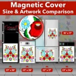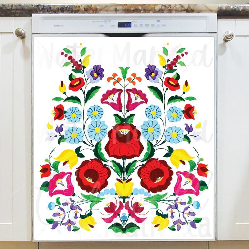 Gussy up your kitchen effortlessly with this stunning Hungarian Kalocsa Folk Design Magnetic Dishwasher Door Cover! Keep in mind that while this cover works with most dishwashers, some stainless steel and plastic doors might not hold magnets. There are two types of stainless steel: one that attracts magnets well and another that does not, and plastic doors will definitely not work with magnets. So, it is a good idea to test the surface with a magnet before making a purchase. If your dishwasher door is not compatible, consider opting for the Removable Dishwasher Door Sticker instead. Your decorated kitchen will be ready for the season in no time! Keep in mind that this magnetic cover is versatile and can be used on a variety of appliances, including fridges, freezers, washers, dryers, and more!