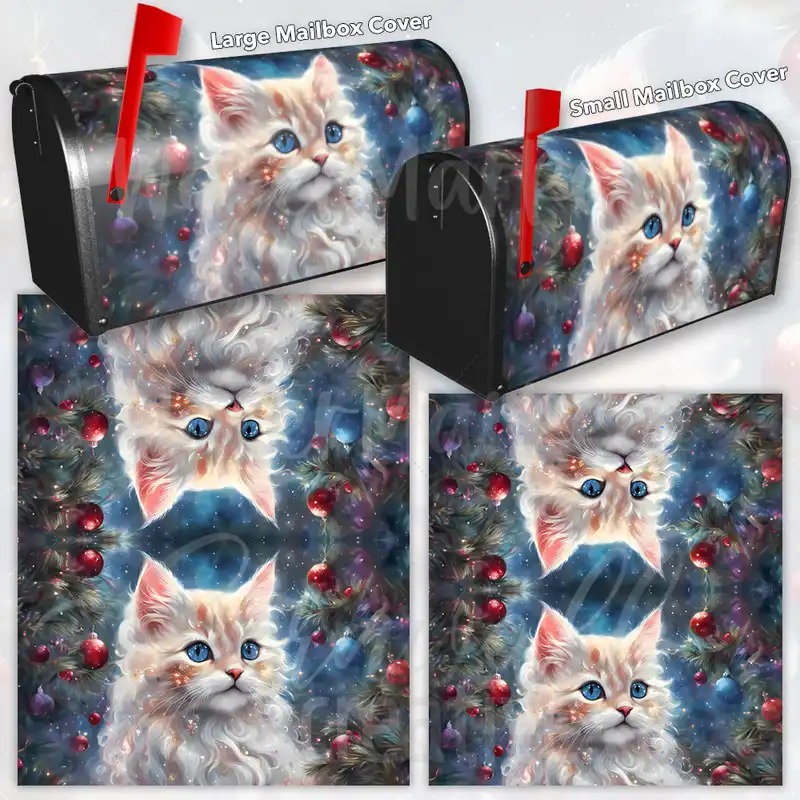 Kitten First Christmas Night Rural Farm Mailbox Cover