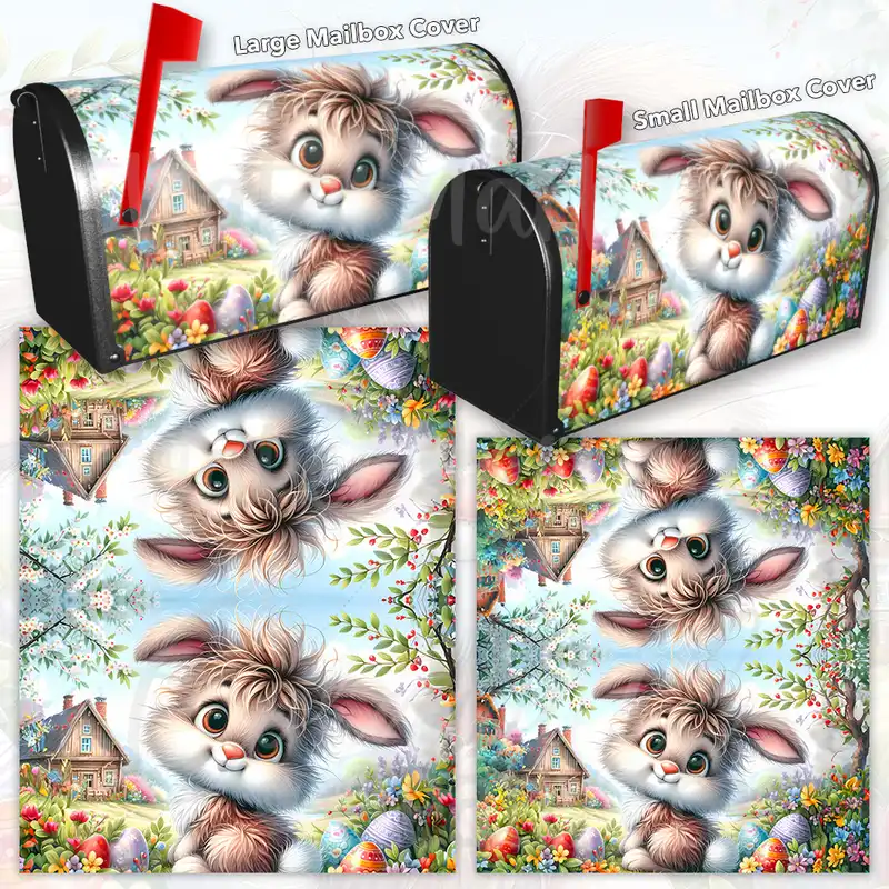 Glamorize your Mailbox and your neighborhood with this brilliant Little Easter Bunny curbside / rural / farm magnetic or self adhesive vinyl Mailbox Cover. Our magnetic covers feature a complete magnetic surface throughout the entire design, unlike lower-quality options that only incorporate two magnet strips combined with a piece of canvas. This ensures better functionality and a more reliable, stronger hold against the wind, also these covers have an additional UV protection, so your covers will not fade for many years. We offer self-adhesive and magnetic covers with both standard opaque vinyl or reflective vinyl options. The reflective mailbox covers function just like license plates and road signs, ensuring excellent visibility during nighttime. No matter the size of your mailbox, we make covers for all small, large and jumbo boxes to suit your needs perfectly!