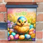 Prettify your Mailbox and your neighborhood with this brilliant Little Easter Chick with Eggs Colonial magnetic or self adhesive vinyl Mailbox Cover. Our magnetic covers feature a complete magnetic surface throughout the entire design, unlike lower-quality options that only incorporate two magnet strips combined with a piece of canvas. This ensures better functionality and a more reliable, stronger hold against the wind, also these covers have an additional UV protection, so your covers will not fade for many years. We offer self-adhesive and magnetic covers with both standard opaque vinyl or reflective vinyl options. The reflective mailbox covers function just like license plates and road signs, ensuring excellent visibility during nighttime. No matter the size of your mailbox, we make covers for all box sizes to suit your needs perfectly!