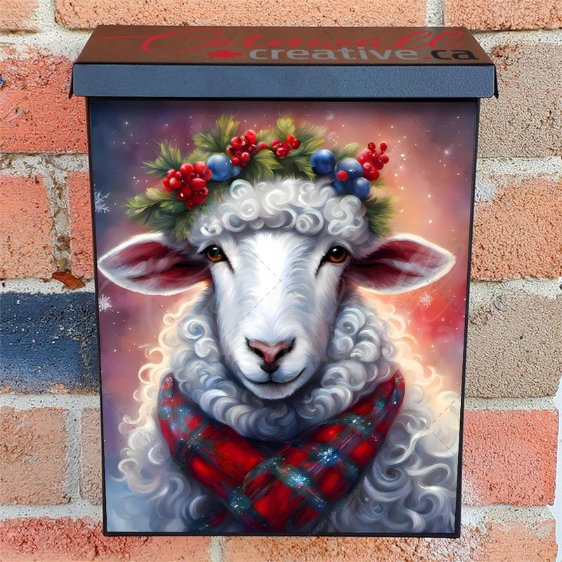 Revamp your Mailbox and your neighborhood with this brilliant Lovely Christmas Mama Sheep Colonial magnetic or self adhesive vinyl Mailbox Cover. Our magnetic covers feature a complete magnetic surface throughout the entire design, unlike lower-quality options that only incorporate two magnet strips combined with a piece of canvas. This ensures better functionality and a more reliable, stronger hold against the wind, also these covers have an additional UV protection, so your covers will not fade for many years. We offer self-adhesive and magnetic covers with both standard opaque vinyl or reflective vinyl options. The reflective mailbox covers function just like license plates and road signs, ensuring excellent visibility during nighttime. No matter the size of your mailbox, we make covers for all box sizes to suit your needs perfectly!