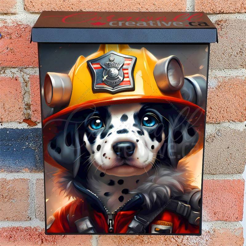 Revamp your Mailbox and your neighborhood with this brilliant Lovely Firefighter Dalmatian Colonial magnetic or self adhesive vinyl Mailbox Cover. Our magnetic covers feature a complete magnetic surface throughout the entire design, unlike lower-quality options that only incorporate two magnet strips combined with a piece of canvas. This ensures better functionality and a more reliable, stronger hold against the wind, also these covers have an additional UV protection, so your covers will not fade for many years. We offer self-adhesive and magnetic covers with both standard opaque vinyl or reflective vinyl options. The reflective mailbox covers function just like license plates and road signs, ensuring excellent visibility during nighttime. No matter the size of your mailbox, we make covers for all box sizes to suit your needs perfectly!