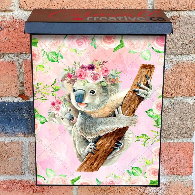 Reform your Mailbox and your neighborhood with this brilliant Mom and Baby Koalas Colonial magnetic or self adhesive vinyl Mailbox Cover. Our magnetic covers feature a complete magnetic surface throughout the entire design, unlike lower-quality options that only incorporate two magnet strips combined with a piece of canvas. This ensures better functionality and a more reliable, stronger hold against the wind, also these covers have an additional UV protection, so your covers will not fade for many years. We offer self-adhesive and magnetic covers with both standard opaque vinyl or reflective vinyl options. The reflective mailbox covers function just like license plates and road signs, ensuring excellent visibility during nighttime. No matter the size of your mailbox, we make covers for all box sizes to suit your needs perfectly!