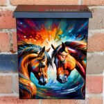 Transform your Mailbox and your neighborhood with this brilliant Native Horse Couple Colonial magnetic or self adhesive vinyl Mailbox Cover. Our magnetic covers feature a complete magnetic surface throughout the entire design, unlike lower-quality options that only incorporate two magnet strips combined with a piece of canvas. This ensures better functionality and a more reliable, stronger hold against the wind, also these covers have an additional UV protection, so your covers will not fade for many years. We offer self-adhesive and magnetic covers with both standard opaque vinyl or reflective vinyl options. The reflective mailbox covers function just like license plates and road signs, ensuring excellent visibility during nighttime. No matter the size of your mailbox, we make covers for all box sizes to suit your needs perfectly!