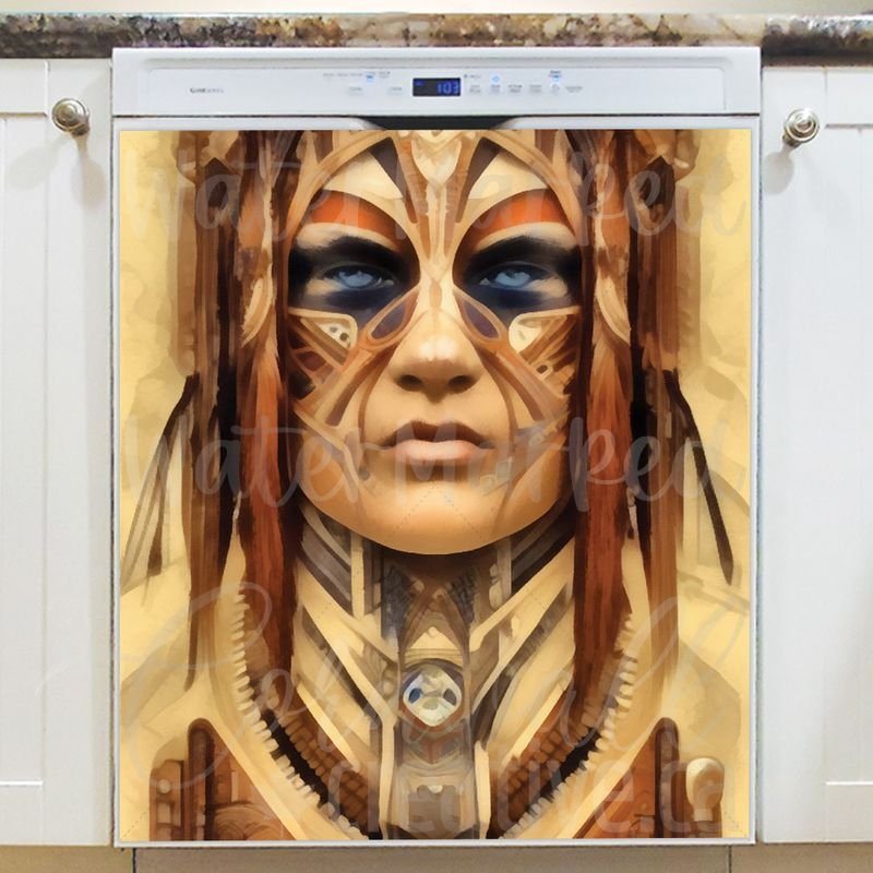 Develop your kitchen effortlessly with this stunning Native Warrior Portrait Magnetic Dishwasher Door Cover! Keep in mind that while this cover works with most dishwashers, some stainless steel and plastic doors might not hold magnets. There are two types of stainless steel: one that attracts magnets well and another that does not, and plastic doors will definitely not work with magnets. So, it is a good idea to test the surface with a magnet before making a purchase. If your dishwasher door is not compatible, consider opting for the Removable Dishwasher Door Sticker instead. Your reformed kitchen will be ready for the season in no time! Keep in mind that this magnetic cover is versatile and can be used on a variety of appliances, including fridges, freezers, washers, dryers, and more!