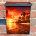 Glamorize your Mailbox and your neighborhood with this brilliant Ocean Beach Scene Of Tropical Coastline Palm Trees at Sunset Colonial magnetic or self adhesive vinyl Mailbox Cover. Our magnetic covers feature a complete magnetic surface throughout the entire design, unlike lower-quality options that only incorporate two magnet strips combined with a piece of canvas. This ensures better functionality and a more reliable, stronger hold against the wind, also these covers have an additional UV protection, so your covers will not fade for many years. We offer self-adhesive and magnetic covers with both standard opaque vinyl or reflective vinyl options. The reflective mailbox covers function just like license plates and road signs, ensuring excellent visibility during nighttime. No matter the size of your mailbox, we make covers for all box sizes to suit your needs perfectly!