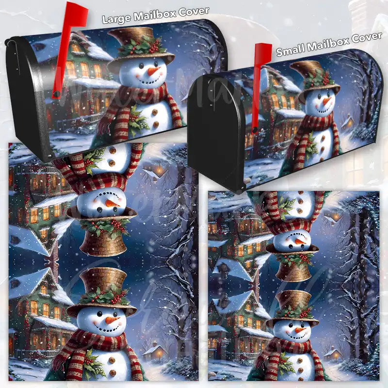 Prettify your Mailbox and your neighborhood with this brilliant Old Fashioned Christmas Snowman curbside / rural / farm magnetic or self adhesive vinyl Mailbox Cover. Our magnetic covers feature a complete magnetic surface throughout the entire design, unlike lower-quality options that only incorporate two magnet strips combined with a piece of canvas. This ensures better functionality and a more reliable, stronger hold against the wind, also these covers have an additional UV protection, so your covers will not fade for many years. We offer self-adhesive and magnetic covers with both standard opaque vinyl or reflective vinyl options. The reflective mailbox covers function just like license plates and road signs, ensuring excellent visibility during nighttime. No matter the size of your mailbox, we make covers for all small, large and jumbo boxes to suit your needs perfectly!