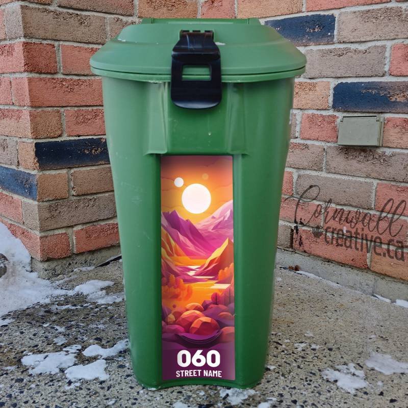 Personalize your green bin (for organics collection) by decorating it with a “orange purple paper cut artwork for a landscape with mountains” customized sticker, adding your address! This simple step makes it easy to identify your bin, especially on windy days when everything gets blown around. Unleash your creativity, think vibrant colors, fun designs, or even stickers that reflect your personality! By personalizing your bin, you’re not just making it visually appealing; you’re helping your neighbors know which bin is yours during collection day.
