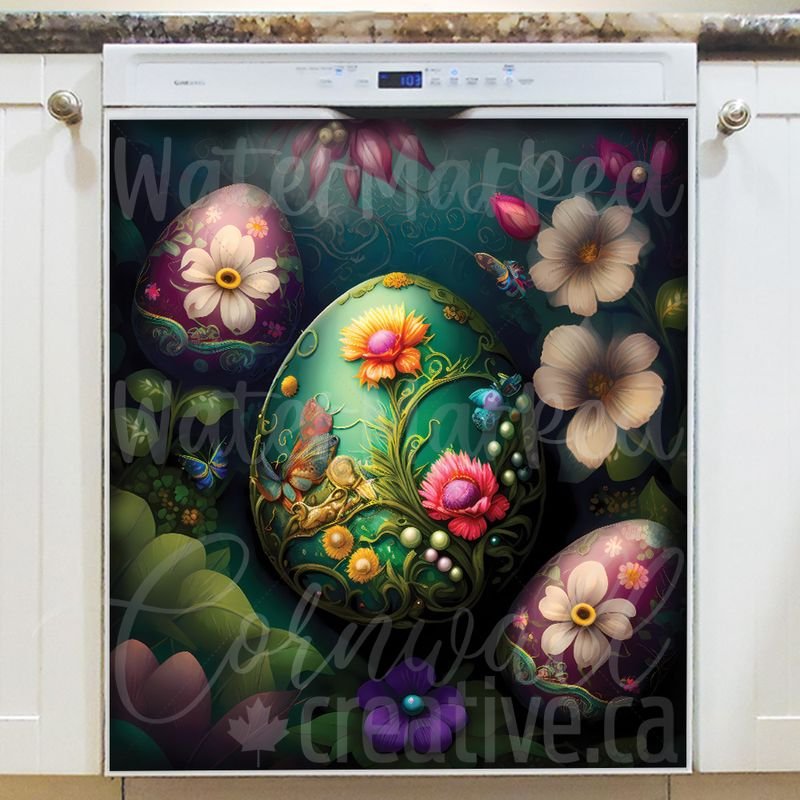 Gussy up your kitchen effortlessly with this stunning Painted Easter Eggs and Flowers #1 Magnetic Dishwasher Door Cover! Keep in mind that while this cover works with most dishwashers, some stainless steel and plastic doors might not hold magnets. There are two types of stainless steel: one that attracts magnets well and another that does not, and plastic doors will definitely not work with magnets. So, it is a good idea to test the surface with a magnet before making a purchase. If your dishwasher door is not compatible, consider opting for the Removable Dishwasher Door Sticker instead. Your glamorized kitchen will be ready for the season in no time! Keep in mind that this magnetic cover is versatile and can be used on a variety of appliances, including fridges, freezers, washers, dryers, and more!