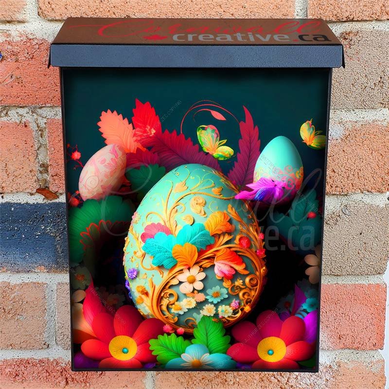 Decorate your Mailbox and your neighborhood with this brilliant Painted Easter Eggs and Flowers #7 Colonial magnetic or self adhesive vinyl Mailbox Cover. Our magnetic covers feature a complete magnetic surface throughout the entire design, unlike lower-quality options that only incorporate two magnet strips combined with a piece of canvas. This ensures better functionality and a more reliable, stronger hold against the wind, also these covers have an additional UV protection, so your covers will not fade for many years. We offer self-adhesive and magnetic covers with both standard opaque vinyl or reflective vinyl options. The reflective mailbox covers function just like license plates and road signs, ensuring excellent visibility during nighttime. No matter the size of your mailbox, we make covers for all box sizes to suit your needs perfectly!