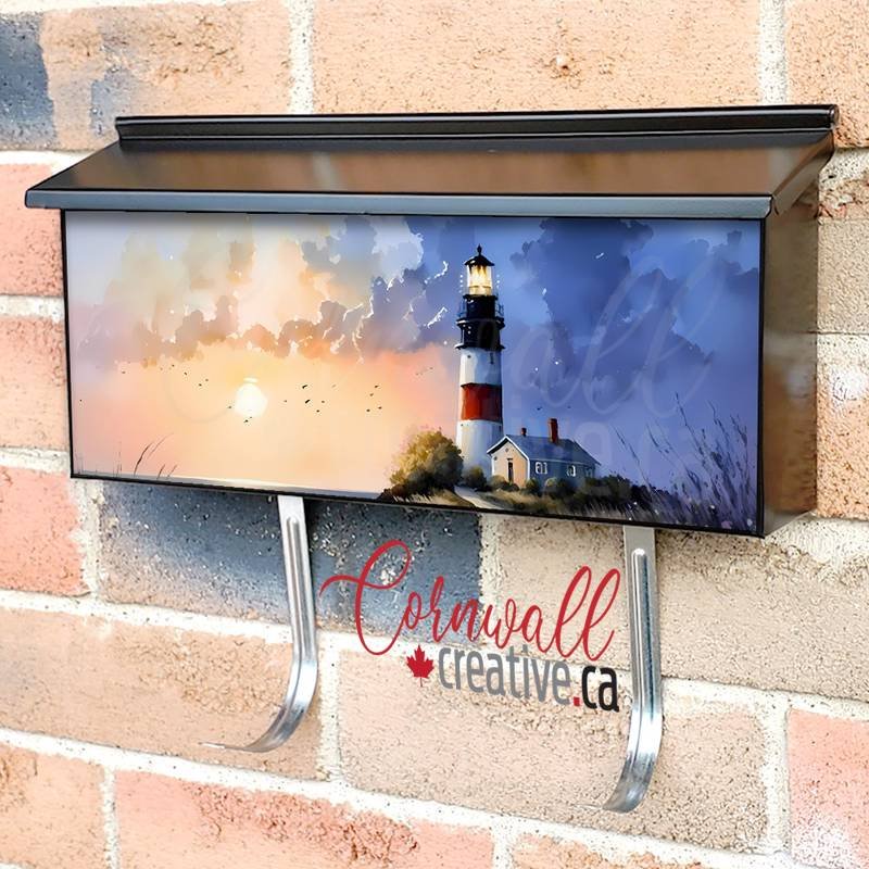 Applying your Path to the Lighthouse wall-mounted townhouse / ranch mailbox cover it is pretty easy to reform your mailbox to a special and unique item. These covers require a flat surface, so they work with townhouse / ranch mailboxes that do not have any embossed / debossed decoration or signs. Magnetic mailbox covers work with steel boxes only, for aluminum and plastic boxes we offer the self-adhesive vinyl covers. Also, you can create your custom townhouse / ranch mailbox cover using you own pictures, adding your name, street number, etc. Our magnetic covers feature a complete magnetic surface throughout the entire design, unlike lower-quality options that only incorporate two magnet strips combined with a piece of canvas. This ensures better functionality and a more reliable, stronger hold against the wind, also these covers have an additional UV protection, so your covers will not fade for many years. The reflective mailbox covers function just like license plates and road signs, ensuring excellent visibility during nighttime.