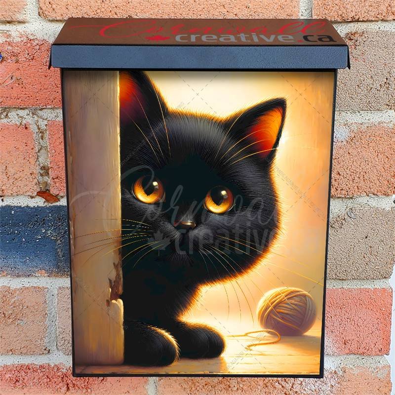 Glamorize your Mailbox and your neighborhood with this brilliant Peeking Black Cat Colonial magnetic or self adhesive vinyl Mailbox Cover. Our magnetic covers feature a complete magnetic surface throughout the entire design, unlike lower-quality options that only incorporate two magnet strips combined with a piece of canvas. This ensures better functionality and a more reliable, stronger hold against the wind, also these covers have an additional UV protection, so your covers will not fade for many years. We offer self-adhesive and magnetic covers with both standard opaque vinyl or reflective vinyl options. The reflective mailbox covers function just like license plates and road signs, ensuring excellent visibility during nighttime. No matter the size of your mailbox, we make covers for all box sizes to suit your needs perfectly!