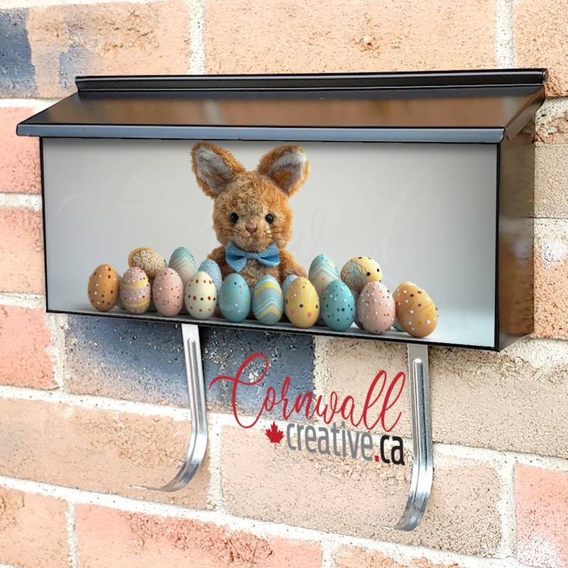 Applying your Plush Brown Bunny Toy With Easter Eggs wall-mounted townhouse / ranch mailbox cover it is pretty easy to embellish your mailbox to a special and unique item. These covers require a flat surface, so they work with townhouse / ranch mailboxes that do not have any embossed / debossed decoration or signs. Magnetic mailbox covers work with steel boxes only, for aluminum and plastic boxes we offer the self-adhesive vinyl covers. Also, you can create your custom townhouse / ranch mailbox cover using you own pictures, adding your name, street number, etc. Our magnetic covers feature a complete magnetic surface throughout the entire design, unlike lower-quality options that only incorporate two magnet strips combined with a piece of canvas. This ensures better functionality and a more reliable, stronger hold against the wind, also these covers have an additional UV protection, so your covers will not fade for many years. The reflective mailbox covers function just like license plates and road signs, ensuring excellent visibility during nighttime.
