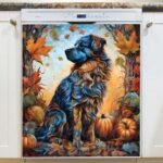 Pretty Autumn Dog Magnetic Dishwasher Door Cover