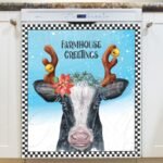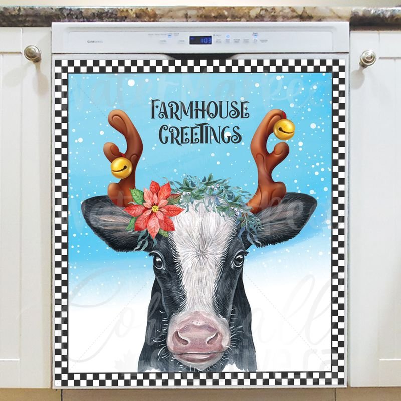 Pretty Farmhouse Christmas Cow Magnetic Dishwasher Door Cover