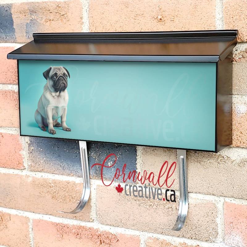 Applying your Pug Dog On Blue Background wall-mounted townhouse / ranch mailbox cover it is pretty easy to improve your mailbox to a special and unique item. These covers require a flat surface, so they work with townhouse / ranch mailboxes that do not have any embossed / debossed decoration or signs. Magnetic mailbox covers work with steel boxes only, for aluminum and plastic boxes we offer the self-adhesive vinyl covers. Also, you can create your custom townhouse / ranch mailbox cover using you own pictures, adding your name, street number, etc. Our magnetic covers feature a complete magnetic surface throughout the entire design, unlike lower-quality options that only incorporate two magnet strips combined with a piece of canvas. This ensures better functionality and a more reliable, stronger hold against the wind, also these covers have an additional UV protection, so your covers will not fade for many years. The reflective mailbox covers function just like license plates and road signs, ensuring excellent visibility during nighttime.