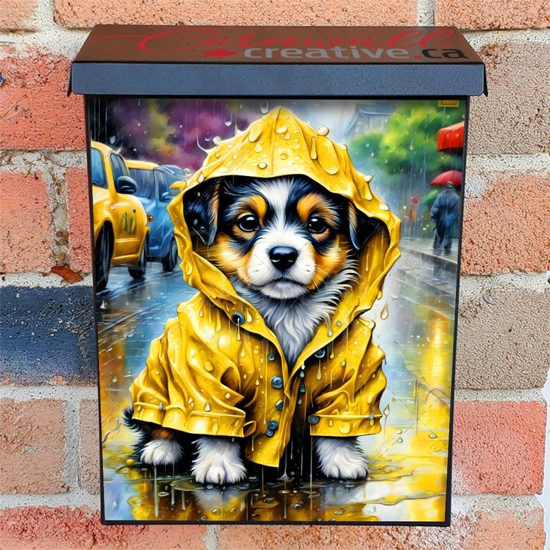 Puppy in Yellow Raincoat Colonial Mailbox Cover