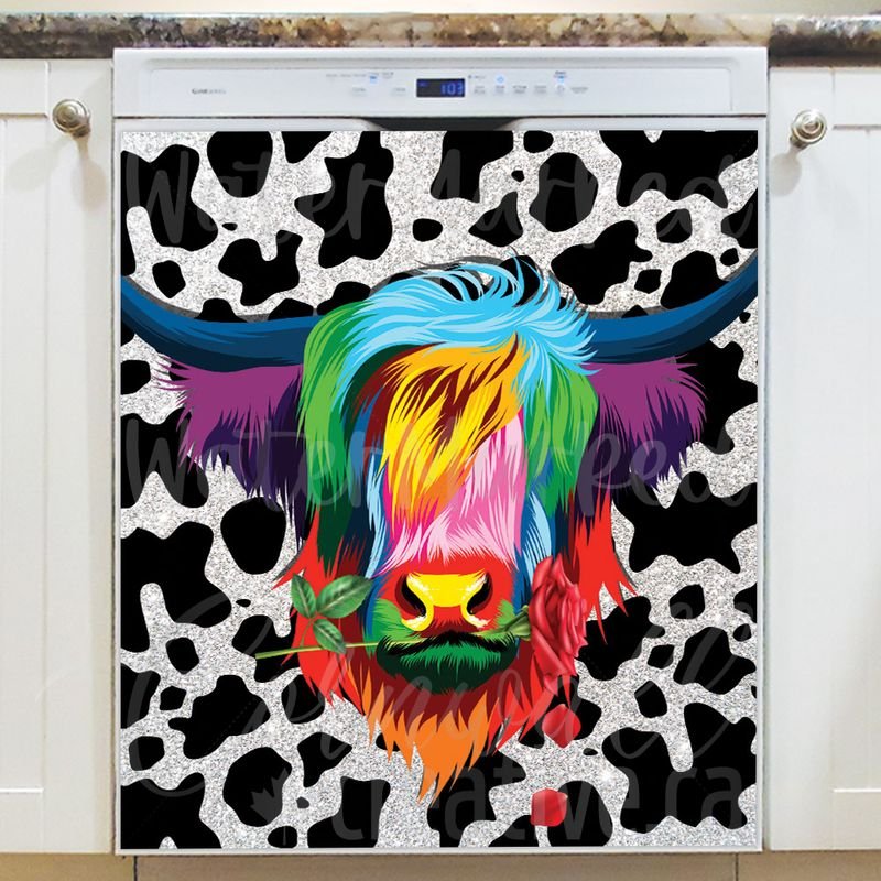 Develop your kitchen effortlessly with this stunning Rainbow Bull on Cowhide Pattern Magnetic Dishwasher Door Cover! Keep in mind that while this cover works with most dishwashers, some stainless steel and plastic doors might not hold magnets. There are two types of stainless steel: one that attracts magnets well and another that does not, and plastic doors will definitely not work with magnets. So, it is a good idea to test the surface with a magnet before making a purchase. If your dishwasher door is not compatible, consider opting for the Removable Dishwasher Door Sticker instead. Your developed kitchen will be ready for the season in no time! Keep in mind that this magnetic cover is versatile and can be used on a variety of appliances, including fridges, freezers, washers, dryers, and more!