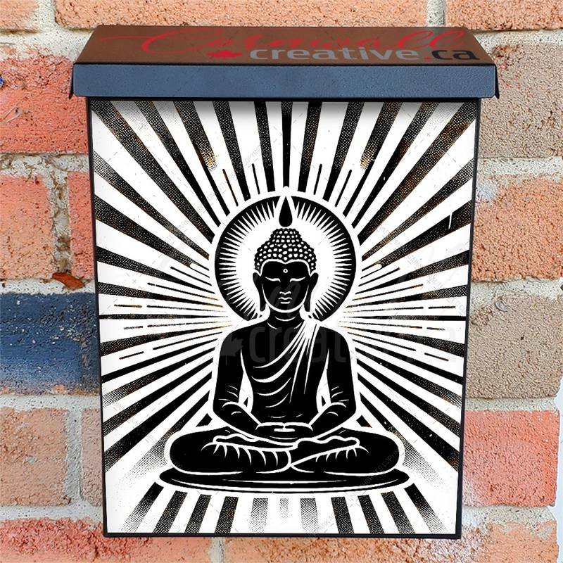 Develop your Mailbox and your neighborhood with this brilliant Relaxing Buddha Colonial magnetic or self adhesive vinyl Mailbox Cover. Our magnetic covers feature a complete magnetic surface throughout the entire design, unlike lower-quality options that only incorporate two magnet strips combined with a piece of canvas. This ensures better functionality and a more reliable, stronger hold against the wind, also these covers have an additional UV protection, so your covers will not fade for many years. We offer self-adhesive and magnetic covers with both standard opaque vinyl or reflective vinyl options. The reflective mailbox covers function just like license plates and road signs, ensuring excellent visibility during nighttime. No matter the size of your mailbox, we make covers for all box sizes to suit your needs perfectly!