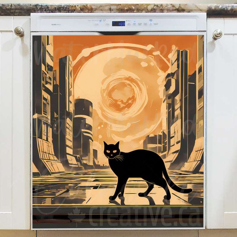 Revamp your kitchen effortlessly with this stunning Retro Atomic Black Cat in the City Magnetic Dishwasher Door Cover! Keep in mind that while this cover works with most dishwashers, some stainless steel and plastic doors might not hold magnets. There are two types of stainless steel: one that attracts magnets well and another that does not, and plastic doors will definitely not work with magnets. So, it is a good idea to test the surface with a magnet before making a purchase. If your dishwasher door is not compatible, consider opting for the Removable Dishwasher Door Sticker instead. Your adorned kitchen will be ready for the season in no time! Keep in mind that this magnetic cover is versatile and can be used on a variety of appliances, including fridges, freezers, washers, dryers, and more!