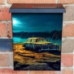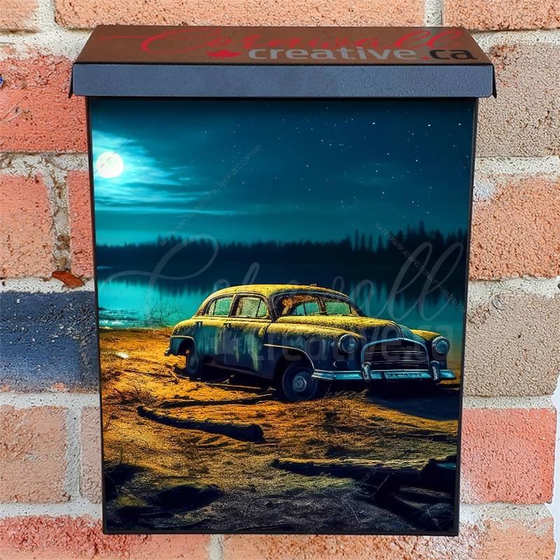 Enhance your Mailbox and your neighborhood with this brilliant Retro Old Car On The Shore Of The Lake At Evening Colonial magnetic or self adhesive vinyl Mailbox Cover. Our magnetic covers feature a complete magnetic surface throughout the entire design, unlike lower-quality options that only incorporate two magnet strips combined with a piece of canvas. This ensures better functionality and a more reliable, stronger hold against the wind, also these covers have an additional UV protection, so your covers will not fade for many years. We offer self-adhesive and magnetic covers with both standard opaque vinyl or reflective vinyl options. The reflective mailbox covers function just like license plates and road signs, ensuring excellent visibility during nighttime. No matter the size of your mailbox, we make covers for all box sizes to suit your needs perfectly!