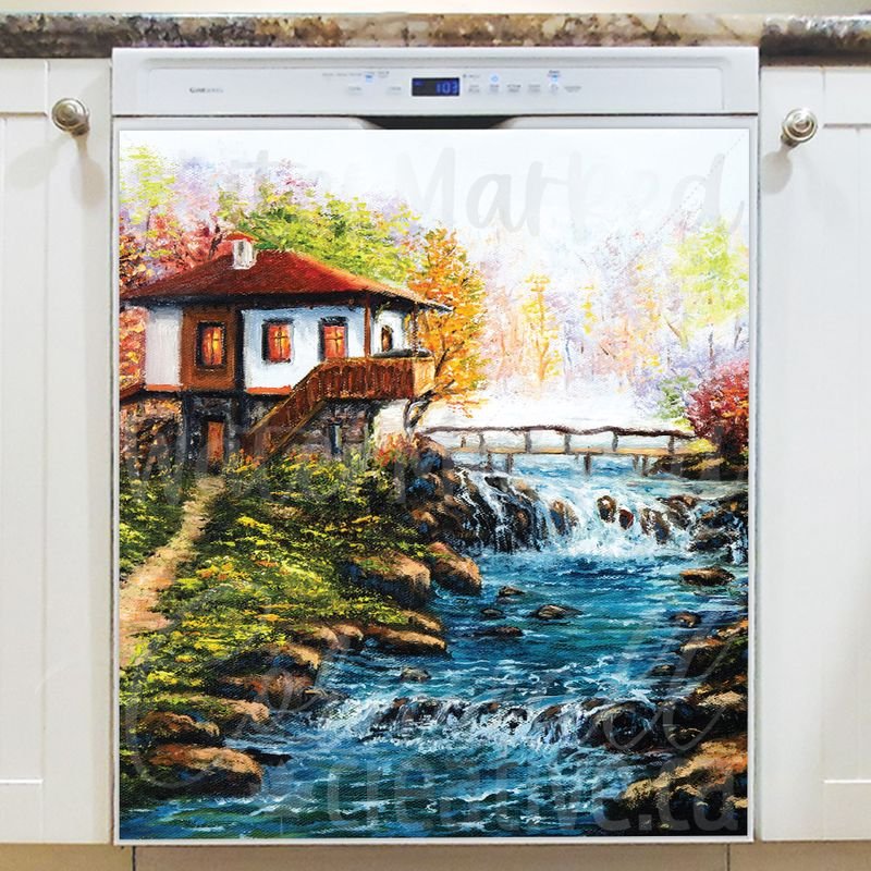 Decorate your kitchen effortlessly with this stunning Riverside Cottage in the Mountains Magnetic Dishwasher Door Cover! Keep in mind that while this cover works with most dishwashers, some stainless steel and plastic doors might not hold magnets. There are two types of stainless steel: one that attracts magnets well and another that does not, and plastic doors will definitely not work with magnets. So, it is a good idea to test the surface with a magnet before making a purchase. If your dishwasher door is not compatible, consider opting for the Removable Dishwasher Door Sticker instead. Your enhanced kitchen will be ready for the season in no time! Keep in mind that this magnetic cover is versatile and can be used on a variety of appliances, including fridges, freezers, washers, dryers, and more!