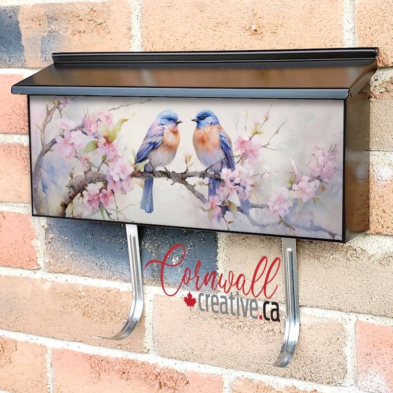 Applying your Romantic Bird Couple Sitting On Tree Branch 4 wall-mounted townhouse / ranch mailbox cover it is pretty easy to lift your mailbox to a special and unique item. These covers require a flat surface, so they work with townhouse / ranch mailboxes that do not have any embossed / debossed decoration or signs. Magnetic mailbox covers work with steel boxes only, for aluminum and plastic boxes we offer the self-adhesive vinyl covers. Also, you can create your custom townhouse / ranch mailbox cover using you own pictures, adding your name, street number, etc. Our magnetic covers feature a complete magnetic surface throughout the entire design, unlike lower-quality options that only incorporate two magnet strips combined with a piece of canvas. This ensures better functionality and a more reliable, stronger hold against the wind, also these covers have an additional UV protection, so your covers will not fade for many years. The reflective mailbox covers function just like license plates and road signs, ensuring excellent visibility during nighttime.