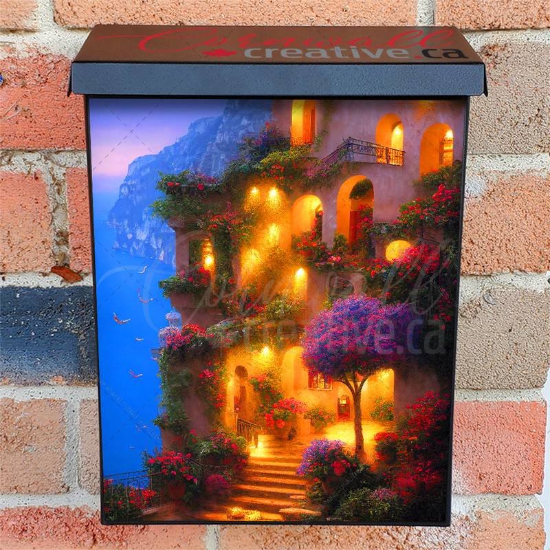 Lift your Mailbox and your neighborhood with this brilliant Romantic Villa Balcony #1 Colonial magnetic or self adhesive vinyl Mailbox Cover. Our magnetic covers feature a complete magnetic surface throughout the entire design, unlike lower-quality options that only incorporate two magnet strips combined with a piece of canvas. This ensures better functionality and a more reliable, stronger hold against the wind, also these covers have an additional UV protection, so your covers will not fade for many years. We offer self-adhesive and magnetic covers with both standard opaque vinyl or reflective vinyl options. The reflective mailbox covers function just like license plates and road signs, ensuring excellent visibility during nighttime. No matter the size of your mailbox, we make covers for all box sizes to suit your needs perfectly!