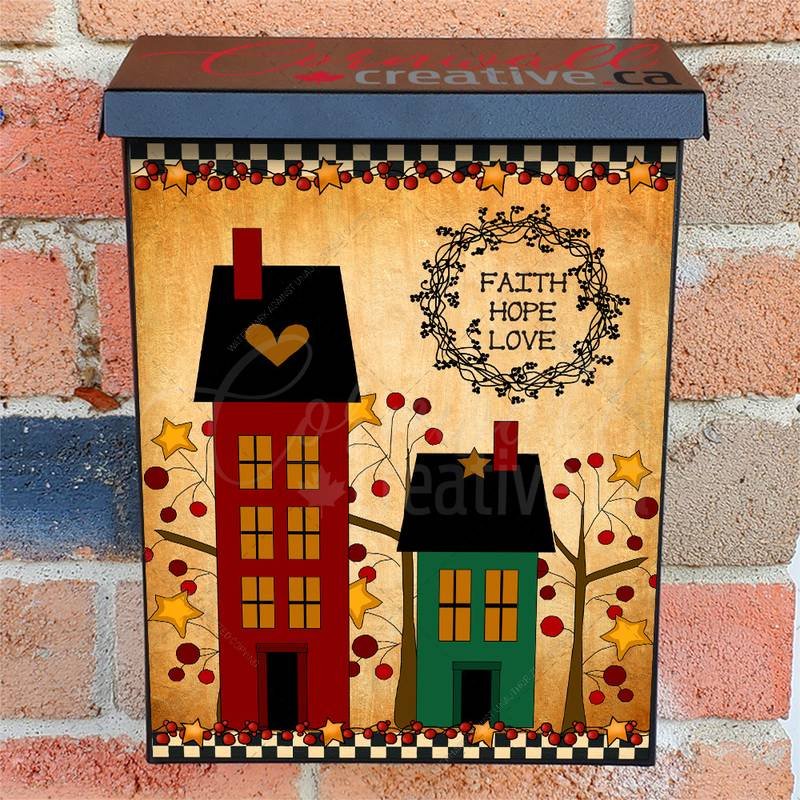 Gild your Mailbox and your neighborhood with this brilliant Saltbox Houses and Pip Berry Trees Colonial magnetic or self adhesive vinyl Mailbox Cover. Our magnetic covers feature a complete magnetic surface throughout the entire design, unlike lower-quality options that only incorporate two magnet strips combined with a piece of canvas. This ensures better functionality and a more reliable, stronger hold against the wind, also these covers have an additional UV protection, so your covers will not fade for many years. We offer self-adhesive and magnetic covers with both standard opaque vinyl or reflective vinyl options. The reflective mailbox covers function just like license plates and road signs, ensuring excellent visibility during nighttime. No matter the size of your mailbox, we make covers for all box sizes to suit your needs perfectly!