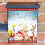 Dress-up your Mailbox and your neighborhood with this brilliant Santa and Rudolph Sleeping Colonial magnetic or self adhesive vinyl Mailbox Cover. Our magnetic covers feature a complete magnetic surface throughout the entire design, unlike lower-quality options that only incorporate two magnet strips combined with a piece of canvas. This ensures better functionality and a more reliable, stronger hold against the wind, also these covers have an additional UV protection, so your covers will not fade for many years. We offer self-adhesive and magnetic covers with both standard opaque vinyl or reflective vinyl options. The reflective mailbox covers function just like license plates and road signs, ensuring excellent visibility during nighttime. No matter the size of your mailbox, we make covers for all box sizes to suit your needs perfectly!