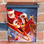 Prettify your Mailbox and your neighborhood with this brilliant Santa’s Christmas Delivery Colonial magnetic or self adhesive vinyl Mailbox Cover. Our magnetic covers feature a complete magnetic surface throughout the entire design, unlike lower-quality options that only incorporate two magnet strips combined with a piece of canvas. This ensures better functionality and a more reliable, stronger hold against the wind, also these covers have an additional UV protection, so your covers will not fade for many years. We offer self-adhesive and magnetic covers with both standard opaque vinyl or reflective vinyl options. The reflective mailbox covers function just like license plates and road signs, ensuring excellent visibility during nighttime. No matter the size of your mailbox, we make covers for all box sizes to suit your needs perfectly!