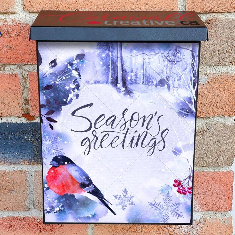 Gussy up your Mailbox and your neighborhood with this brilliant Season Greeting with a Robin Colonial magnetic or self adhesive vinyl Mailbox Cover. Our magnetic covers feature a complete magnetic surface throughout the entire design, unlike lower-quality options that only incorporate two magnet strips combined with a piece of canvas. This ensures better functionality and a more reliable, stronger hold against the wind, also these covers have an additional UV protection, so your covers will not fade for many years. We offer self-adhesive and magnetic covers with both standard opaque vinyl or reflective vinyl options. The reflective mailbox covers function just like license plates and road signs, ensuring excellent visibility during nighttime. No matter the size of your mailbox, we make covers for all box sizes to suit your needs perfectly!